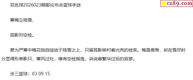 > 26年福彩双色球023期 哥伦布一句杀蓝球字谜
